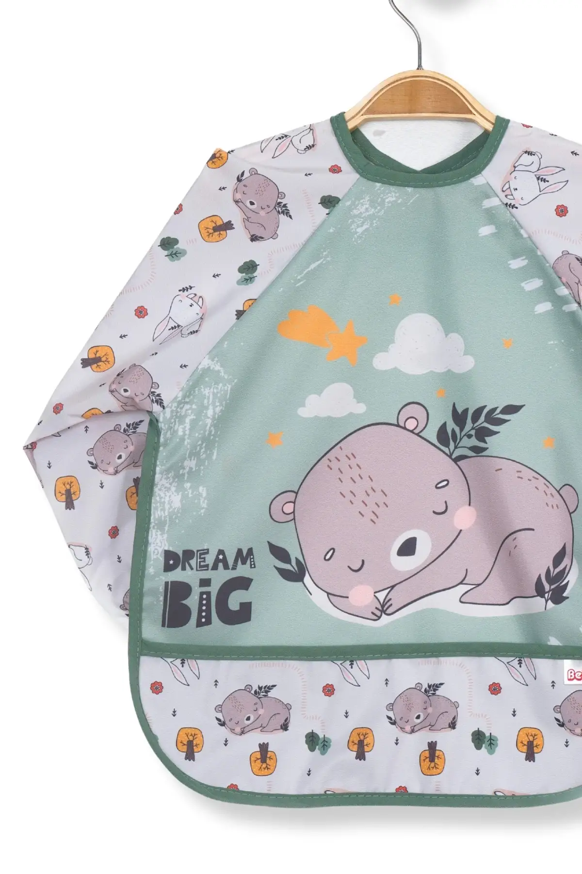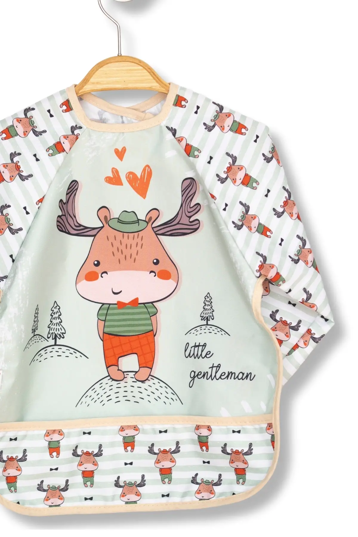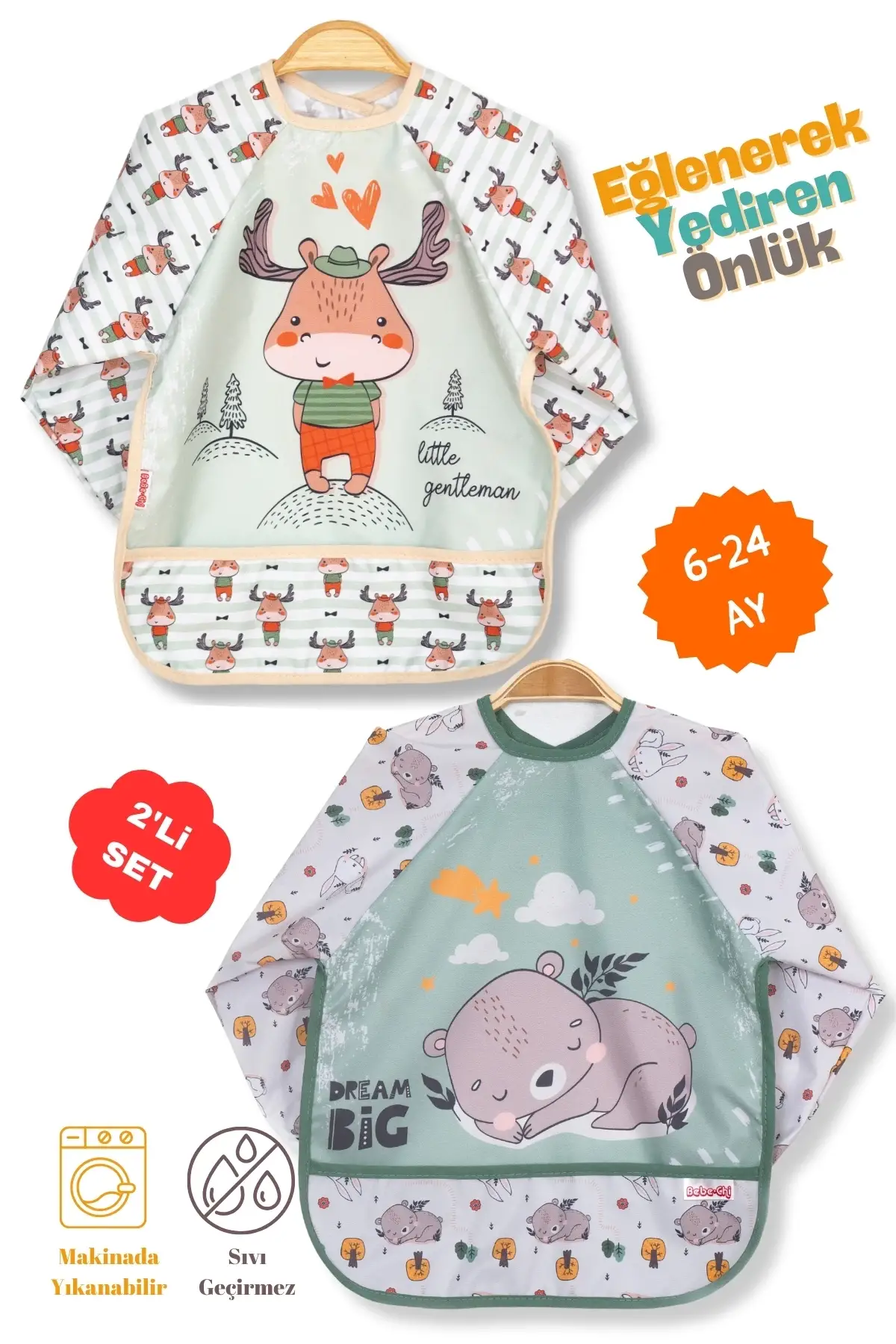 2'Li Uzun Kollu Giyilebilir Sevimli Ayı-Geyik Desen Sıvı Geçirmez Aktivite ve Mama Önlüğü 6-24 AY