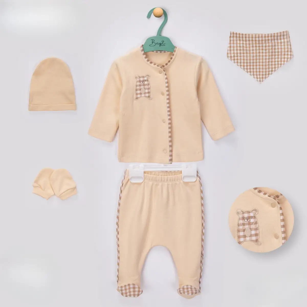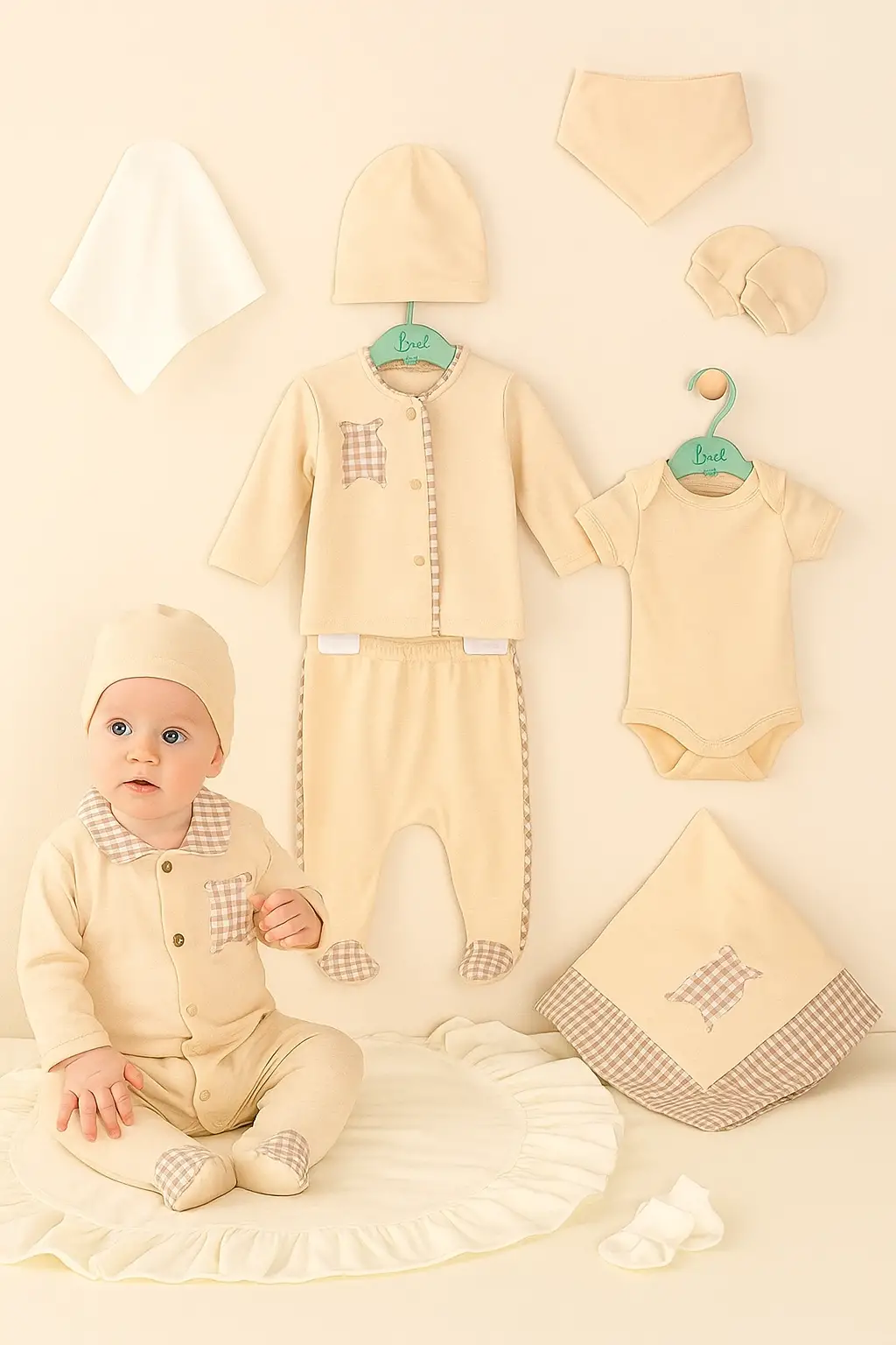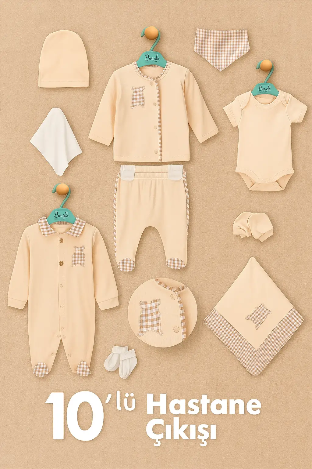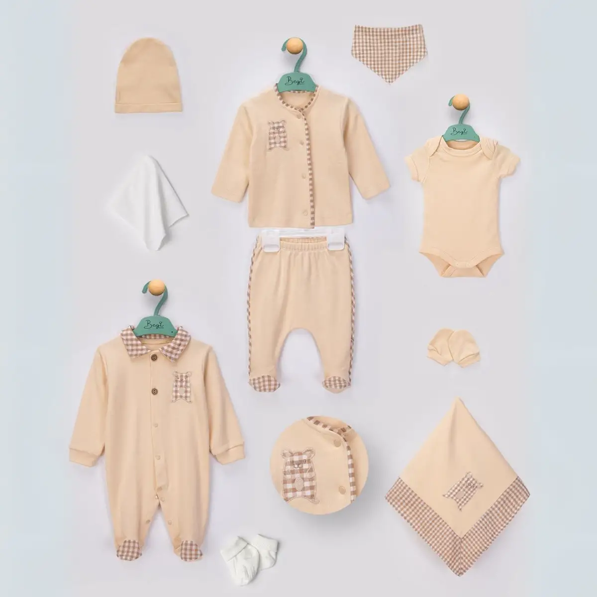 Babydonat Pitikareli %100 pamuk 10'lu erkek bebek hastane çıkış seti, minik bebeğiniz için konforlu bir başlangıç sunar.