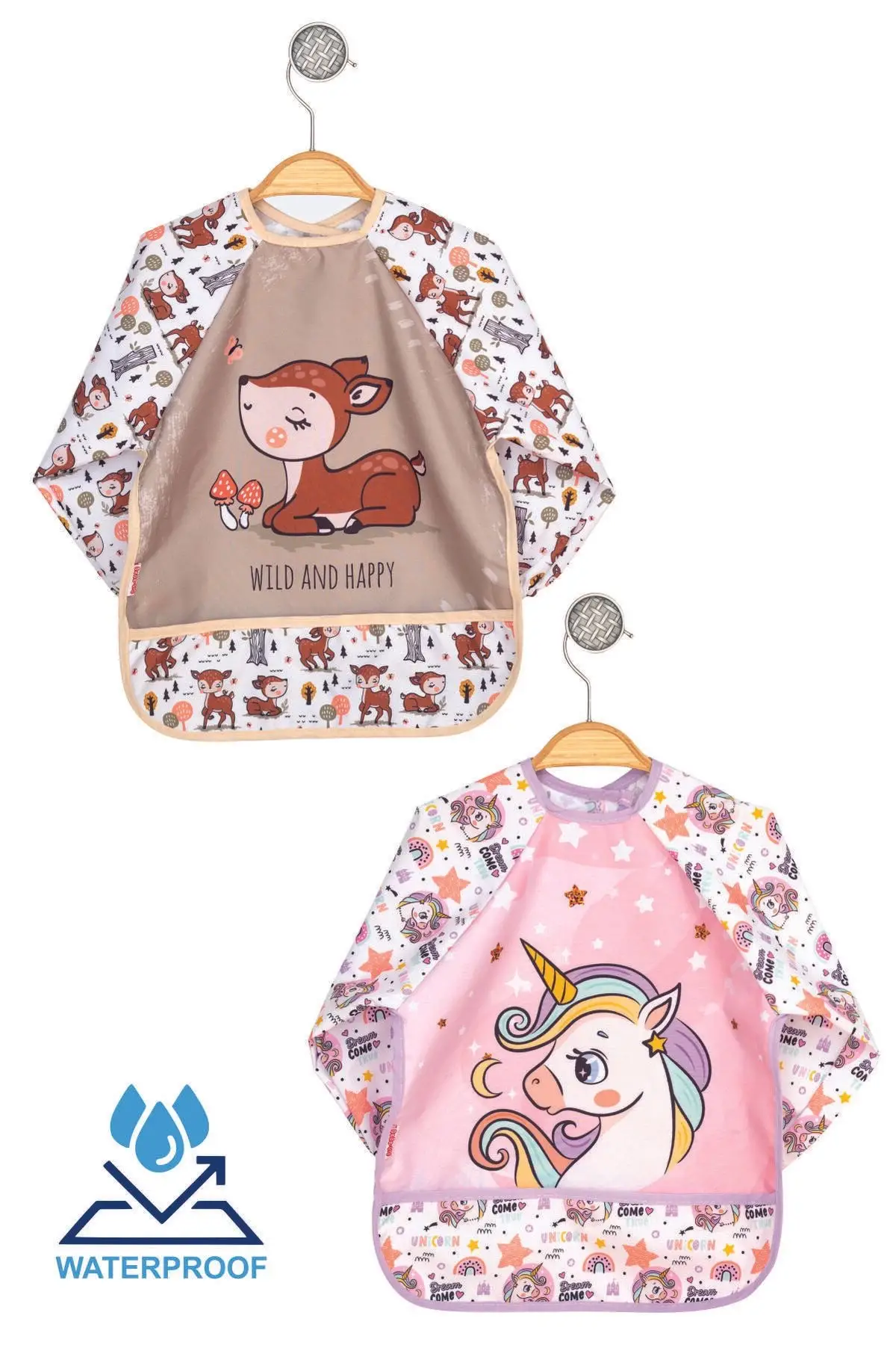 Uzun Kollu 2'li Mama Ve Etkinlik Önlüğü Ceylan Ve Unicorn Desenli 0-24 Ay