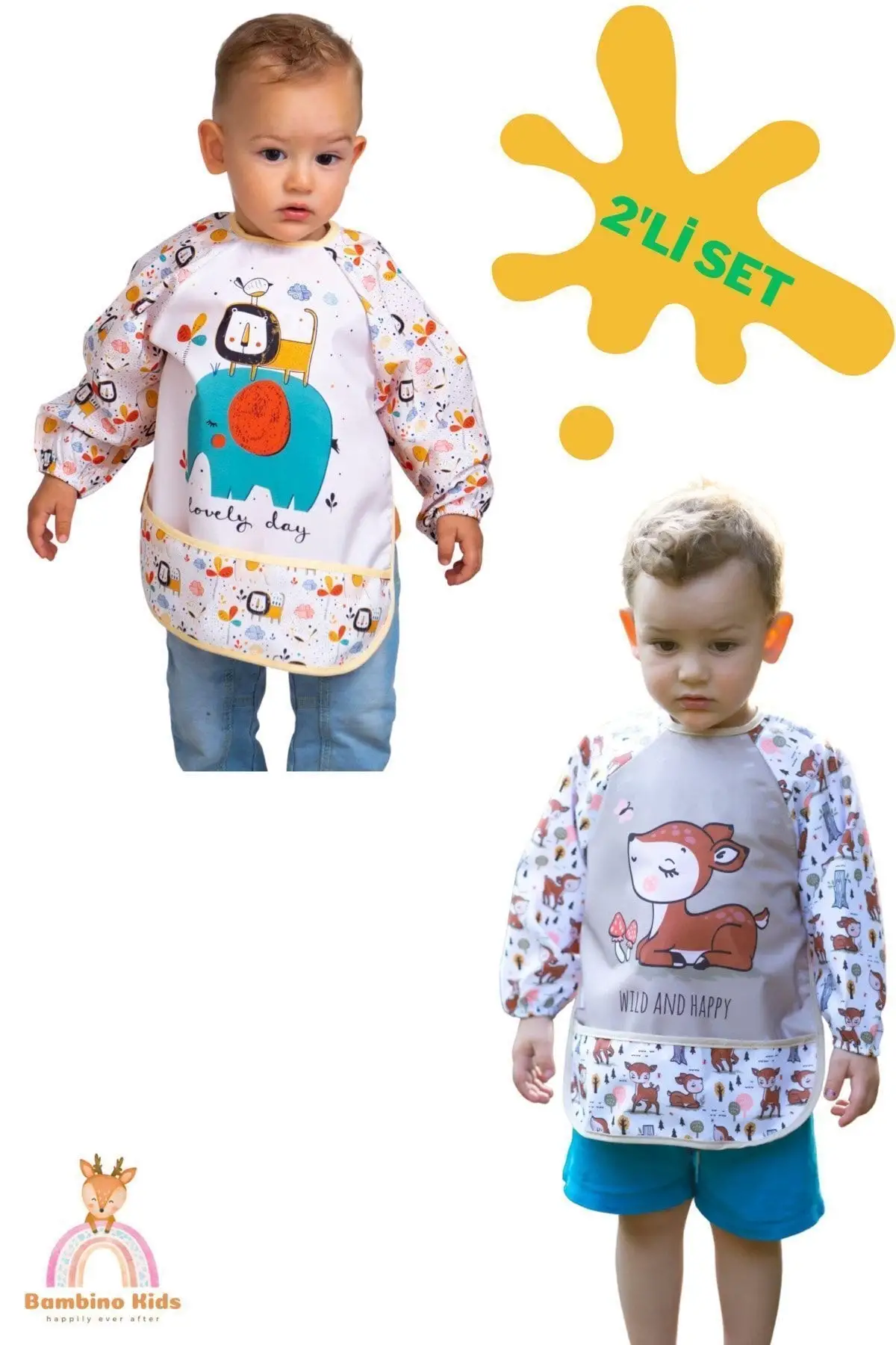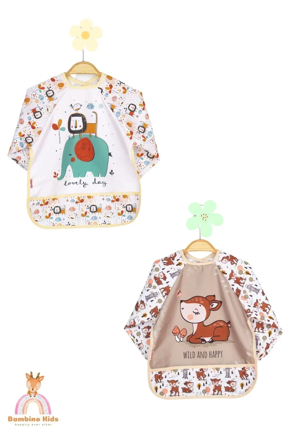 Uzun Kollu Sıvı Geçirmez Mama Önlüğü 2'li Set (6-24 AY) Safari-karaca